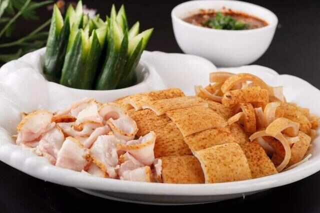 白族生皮是一道非常具有云南特色的菜品,對于云南人來(lái)說(shuō),這是一道不可多得的特色美食。對許多生活在云南當地的白族來(lái)而言,生皮僅僅是一道非常初級的入門(mén)菜而已,這道菜已經(jīng)成為了他們日常生活中必不可少的一道菜品了。對于很多的外地人來(lái)說(shuō),生皮確實(shí)有點(diǎn)難以接受,而且他們還覺(jué)得生吃東西非常不利于身體健康。白族生皮以豬肉的皮作為主要原料,當地人通常在殺豬時(shí)要把豬皮上的毛處理干凈。之后將生豬皮放在火上烤一會(huì ),把豬皮上的毛全部烤干凈就可以了,這樣烤出來(lái)的豬皮是黃色的。雖然把生的豬皮用火烤了一會(huì )兒,但對于很多外地人來(lái)說(shuō),還是很難嘗試去吃一口。