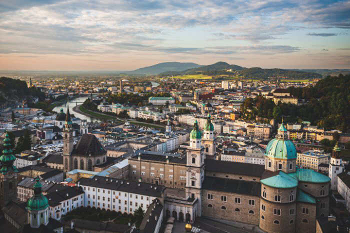 薩爾茨堡位于奧地利中部,是奧地利第四大城市,也是著(zhù)名的莫扎特的出生地。不難看出這座宏偉的歷史名城是如何啟發(fā)這位偉大的作曲家的。沿著(zhù)薩爾扎克河(Salzach River)伸展,以令人驚嘆的阿爾卑斯風(fēng)光為背景,這座城市真的很迷人。它的天際線(xiàn)因中世紀的霍亨薩爾茨堡城堡而更加雄偉,這座城堡坐落在費斯滕斯堡山頂,俯瞰整個(gè)城市。你可以上山走20分鐘,或者乘坐纜車(chē)在一分鐘內到達山頂。