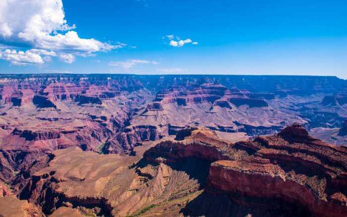 科羅拉多大峽谷位于美國科羅拉多高原,是世界上最壯麗的峽谷之一。這個(gè)峽谷圓環(huán)地區遍布著(zhù)峽谷、臺地、懸崖、孤峰和尖塔等特殊的地理景觀(guān),科羅拉多大峽谷兩岸都是斑斕似火的巨巖斷層,巖層嶙峋、層巒疊嶂,夾著(zhù)一條深不見(jiàn)底的巨谷,卓顯出無(wú)比的蒼勁壯麗。