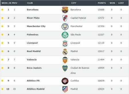 2023年世界足球俱樂(lè )部最新排名,巴薩位列第一