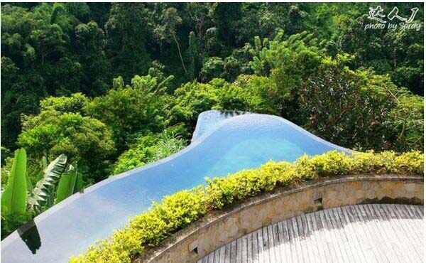 HANGING GARDEN 空中花園位于烏布,巨大的泳池被層層疊疊的原始森林和梯田包圍著(zhù),在泳池里的體驗好像懸掛在空中,不負空中花園這樣的稱(chēng)呼。