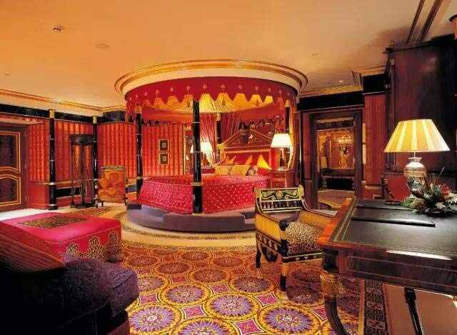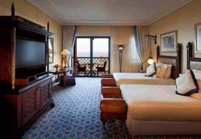 Al Qasr “皇宮”酒店依照仿古堡的設計風(fēng)格締造阿拉伯式的夢(mèng)幻度假村,房間飾有舊迪拜的古老照片,擺放著(zhù)沉重的木家具,并設有華麗的洗手間。