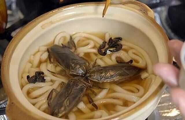 把蟑螂當作主角,做成一碗黑壓壓的蟑螂湯,上面還飄著(zhù)蟑螂那被大卸八塊的尸體,這樣式兒的湯,您敢去喝它嗎?對于那些懼怕蟲(chóng)子的人而言,多看一眼就會(huì )渾身起雞皮疙瘩。其實(shí)蟑螂湯是日本特色美食,一些售賣(mài)蟑螂湯的小店,甚至還會(huì )讓顧客親自把活蟑螂放入熱湯中,蟑螂拼命向外爬的樣子會(huì )給人造成強烈的視覺(jué)沖擊。日本女性認為蟑螂湯具有美容養顏的功效,所以她們經(jīng)常會(huì )去喝。而中國人則認為蟑螂渾身充滿(mǎn)細菌,見(jiàn)到就必須把它拍死才算完事兒,倒找錢(qián)都不會(huì )喝的。