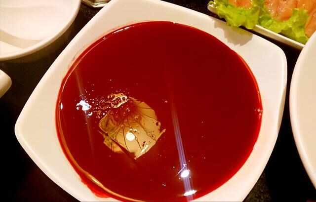 血湯是越南傳統湯菜,被當地人認為是上天的恩賜。據說(shuō)一口血湯喝下去,滿(mǎn)嘴都是血,看起來(lái)相當瘆人,可是越南人卻習以為常,甚至還覺(jué)得血湯是人間第一美味。越南人會(huì )在大早上宰一只鴨子,然后把鴨子的血放完,儲存在各個(gè)小碗中,接下來(lái)等待鴨血逐漸凝固成果凍狀,再把鴨肉用鍋煮熟切成小肉塊,等到鴨血以及鴨肉準備就緒時(shí),把香噴噴的鴨肉放到果凍狀的鮮鴨血上,再添點(diǎn)菜葉作為點(diǎn)綴,這樣一道美味鴨血湯便做好了。