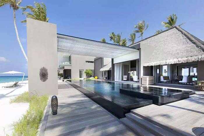 白馬莊園度假酒店隸屬于法國奢侈品集團LVMH,由著(zhù)名設計師Jean Michel Gathy操刀設計,4間臥室,25米長(cháng)的室外游泳池、戶(hù)外淋浴房、私人沙灘…備品是同屬LVMH旗下的嬌蘭。