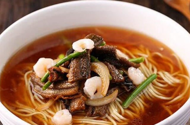 蝦爆鱔面是杭州的特色面食之一。它選用新鮮的鱔魚(yú)和蝦仁,經(jīng)過(guò)炒制而成,面條勁道,配料鮮美,口感豐富,是一道美味可口的面食。