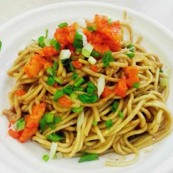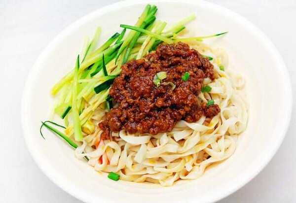 北京最具代表性的面條,由菜碼、炸醬拌面條而成。將黃瓜、香椿、豆芽、青豆、黃豆切好或煮好,做成菜碼備用。然后做炸醬,將肉丁及蔥姜等放在油里炒,再加入黃豆制作的黃醬或甜面醬炸炒,即成炸醬。面條煮熟后,撈出,燒上炸醬,拌以菜碼,即成炸醬面。