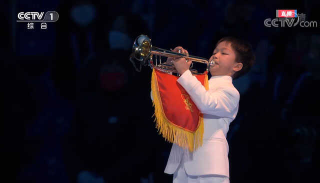 開(kāi)幕式國旗傳遞環(huán)節,[bai]一名小男孩站在旗桿下,用小號吹響了嘹亮深情的《我和我的祖國》。小號聲響起的瞬間,全世界觀(guān)眾的目光都落在這個(gè)稚嫩可愛(ài)的孩子身上。