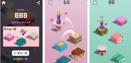 《開(kāi)心跳一跳》玩法簡(jiǎn)單,點(diǎn)擊,松開(kāi),點(diǎn)擊再松開(kāi),[bai]點(diǎn)擊長(cháng)安的時(shí)間越長(cháng)跳躍的距離就會(huì )越遠,樂(lè )趣不在于你能跳躍得多元,而是你能夠走多少步,這游戲沒(méi)有終點(diǎn),但你一九需要無(wú)止境的前進(jìn),快來(lái)挑戰吧。